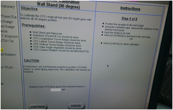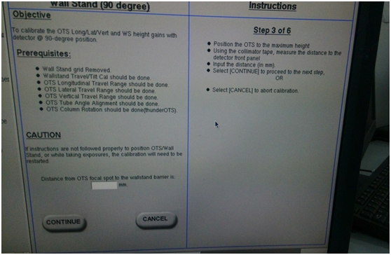 C. 將平板移動(dòng)到低于床的位置,再將球管吊架上移到最高,使用準(zhǔn)直器上皮尺測(cè)量,輸入準(zhǔn)直器到平板的大概位置是1780MM左右。點(diǎn)擊繼續(xù)按鈕。