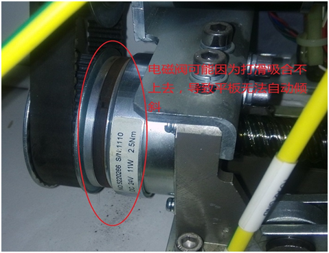 2. 檢修后發(fā)現(xiàn)可能是里面的電磁閥使用時(shí)間長(zhǎng)了,表面變的光滑,點(diǎn)擊旋轉(zhuǎn)按鈕吸合上又掉下來(lái),但是給它一個(gè)人力平板可以向上偏轉(zhuǎn)。所以應(yīng)該是電磁閥的原因。
