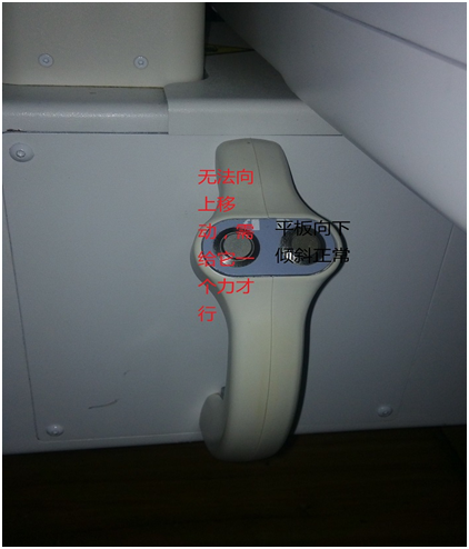 1. 試用調(diào)節(jié)按鈕,平板不能向上偏轉(zhuǎn),但是可以向下偏轉(zhuǎn)。打開(kāi)平板控制開(kāi)關(guān)。
