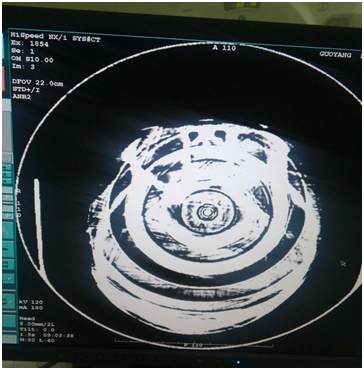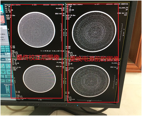2. 我用頭部條件掃水膜,可以曝光。但出來(lái)的圖像有環(huán)狀偽影,需要做校正。但是雙排的水膜在老區(qū),只能第二天再做校正。第二天做病人,做頭部的都還行,但是做腰椎圖像出來(lái)?xiàng)l紋狀偽影。