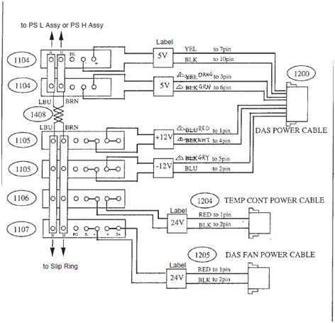 懷疑通道板有問(wèn)題。打開(kāi)通道板蓋板除塵,CIF板插拔下。之后做空氣校正時(shí)還是無(wú)法曝光。最后檢測(cè)到DAS電源中一個(gè)12V電源電壓不穩(wěn)(12V電壓檢測(cè)出6V電壓,過(guò)會(huì)再試又變成12V電壓)。