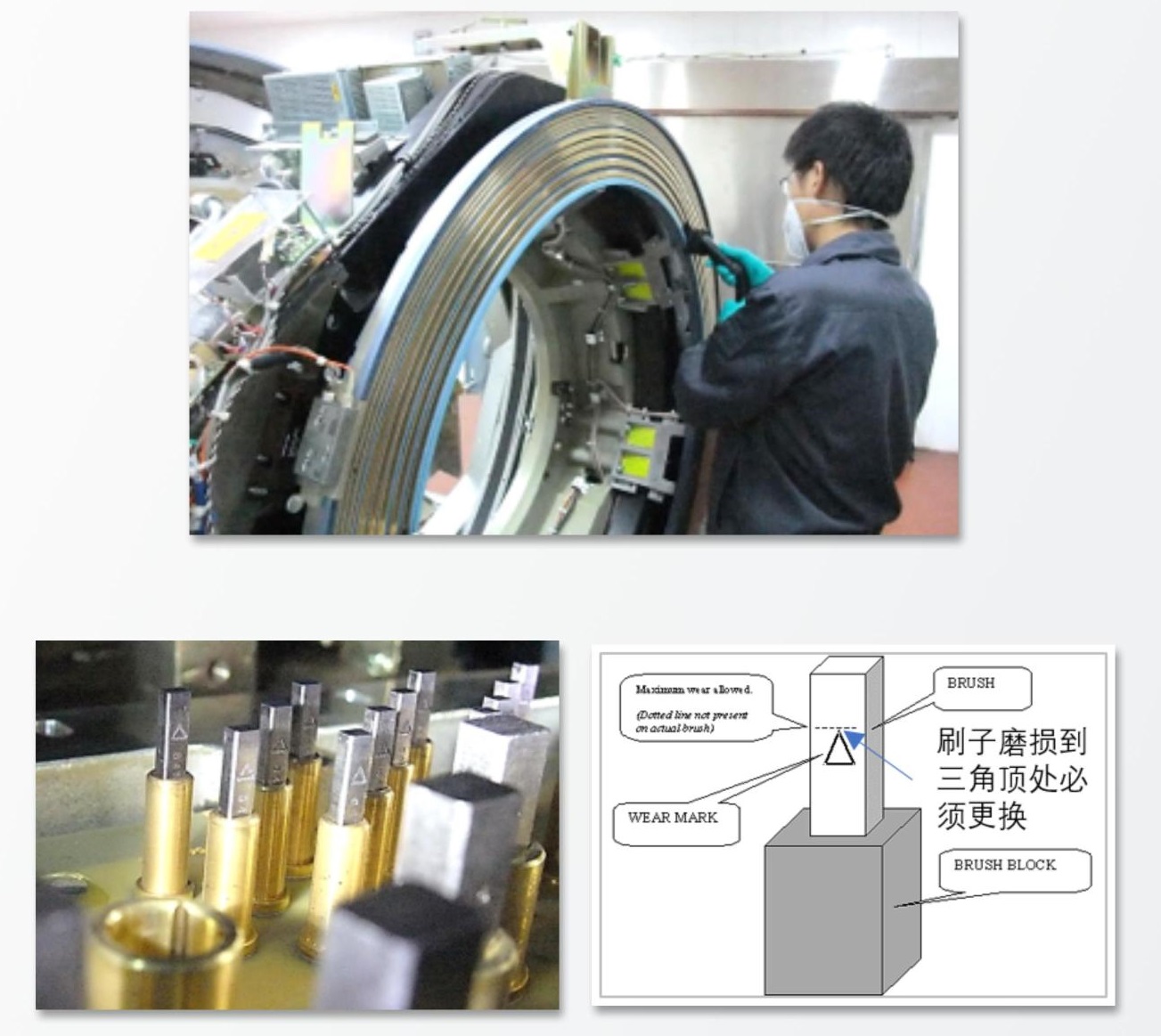 ③ 刷頭磨損檢查, 包含電源刷和信號(hào)刷。