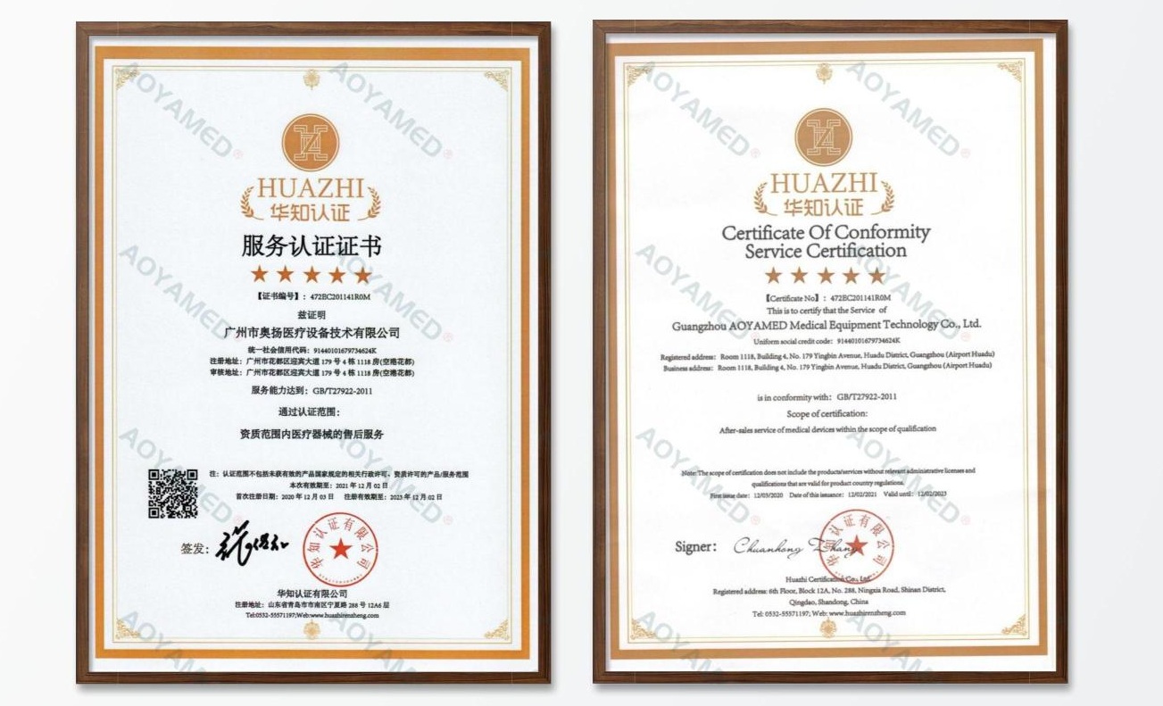 十多年來,奧揚醫(yī)療培養(yǎng)了一支高素質(zhì)的專業(yè)售后團隊,實現(xiàn)覆蓋全國的網(wǎng)格化服務模式,能夠快速響應用戶需求,及時提供最專業(yè)優(yōu)質(zhì)的服務,贏得了客戶的好評和贊譽。售后服務體系五星認證對公司的售后服務標準提出了更高的要求,也標志著售后服務水平跨上了一個嶄新臺階。今后奧揚醫(yī)療將更加嚴格要求為新老客戶提供快速、專業(yè)、全面、高效的售后服務,成為客戶最信賴的合作伙伴。