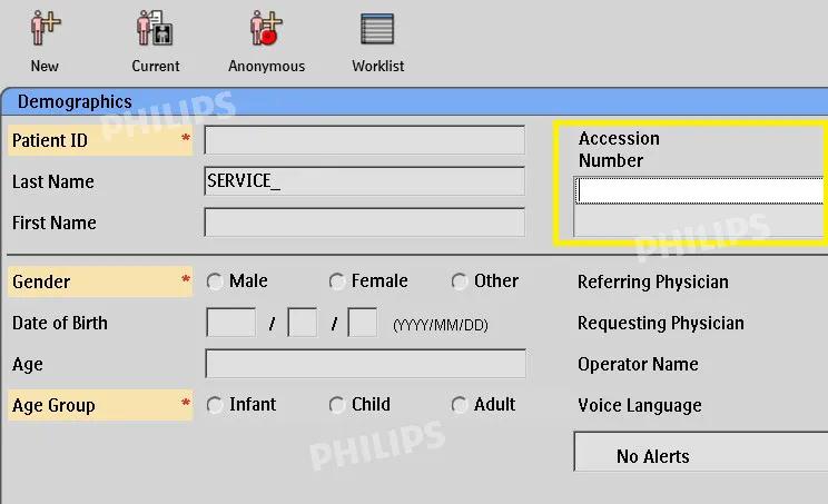 首先,要確認(rèn)患者登記界面有Accession Number,如下圖黃框: