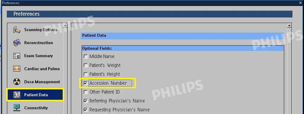 隨后點(diǎn)擊Patient Data,勾選 Accession Number。如下圖: