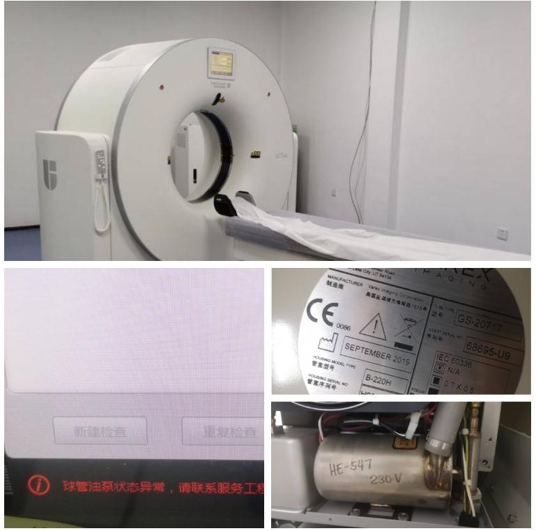 一家養(yǎng)老醫(yī)院一臺(tái)聯(lián)影UCT520型CT機(jī),系統(tǒng)報(bào)錯(cuò),機(jī)器不能使用,工程師判斷球管故障,需要更換球管。