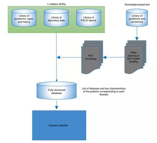 尤其值得一提的是,針對(duì)電子病歷中醫(yī)生記錄的診斷文本,研究人員建立了一套自然語言處理模型進(jìn)行信息提取。在這一階段,兩個(gè)研究機(jī)構(gòu)的醫(yī)生和科學(xué)家通力合作,由高級(jí)主治醫(yī)師和信息學(xué)研究人員組成的專家團(tuán)隊(duì)手動(dòng)給電子病歷上的6000多張圖表進(jìn)行注釋,對(duì)模型進(jìn)行訓(xùn)練和檢驗(yàn)。高質(zhì)量的數(shù)據(jù)輸入成為這套系統(tǒng)的關(guān)鍵優(yōu)勢(shì)。