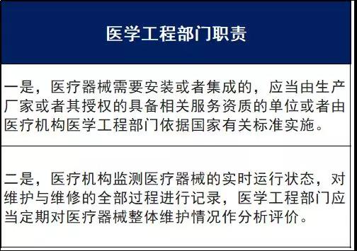 而在此次二級以上醫(yī)院器械管理委員會中承擔主要任務(wù)的就是醫(yī)學(xué)工程部門?!掇k法》規(guī)定,二級以上醫(yī)院的醫(yī)學(xué)工程部門應(yīng)當配備與功能、任務(wù)、規(guī)模相適應(yīng)的醫(yī)學(xué)工程及其他專業(yè)技術(shù)人員、設(shè)備和設(shè)施。