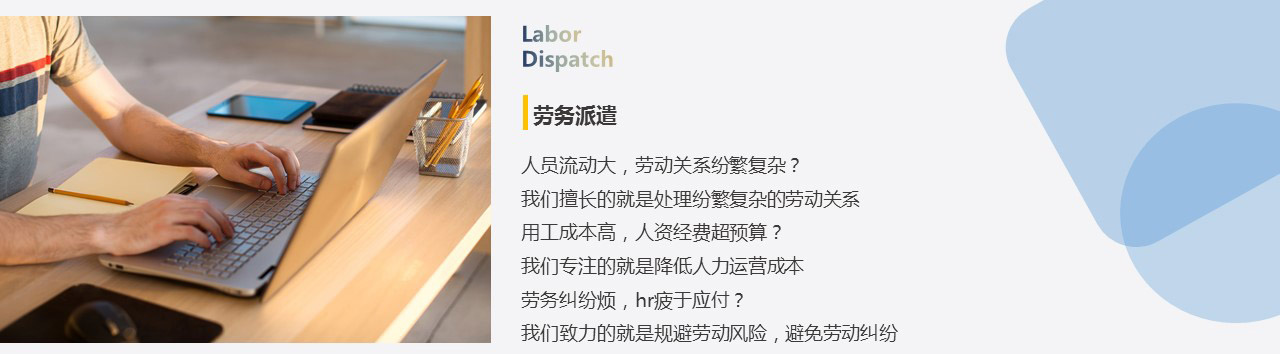 勞務派遣又稱人力派遣、人才租賃、勞動派遣、勞動力租賃、雇員租賃,是指由勞務派遣機構與派遣勞工訂立勞動合同,把勞動者派向其他用工單位,再由其用工單位向派遣機構支付一筆服務費用的一種用工形式。勞動力給付的事實發生于派遣勞工與要派企業(實際用工單位)之間,要派企業向勞務派遣機構支付服務費,勞務派遣機構向勞動者支付勞動報酬。